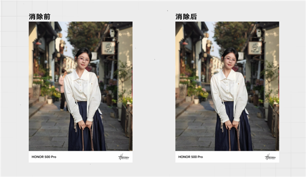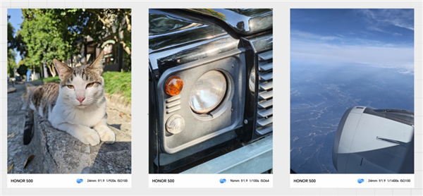 荣耀 500 标准版依旧是主摄+超广角的经典组合,而 Pro 版则通过一颗直立长焦跟标准版拉开了差距 ——换句话说,想玩长焦?得加钱!但你要说它们的影像拉了,那倒未必。