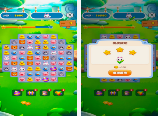该游戏采用经典的三消机制,以各种可爱的动物头像作为消除元素。玩家只需将三个或更多相同图案连成一线即可完成消除并得分。通过拖动调整位置,实现最优排列组合,达成关卡目标分数即可过关。作为一款纯单机、无需网络连接的游戏,它提供了大量精心设计的关卡,持续带来新鲜挑战,全程无广告干扰,体验流畅。