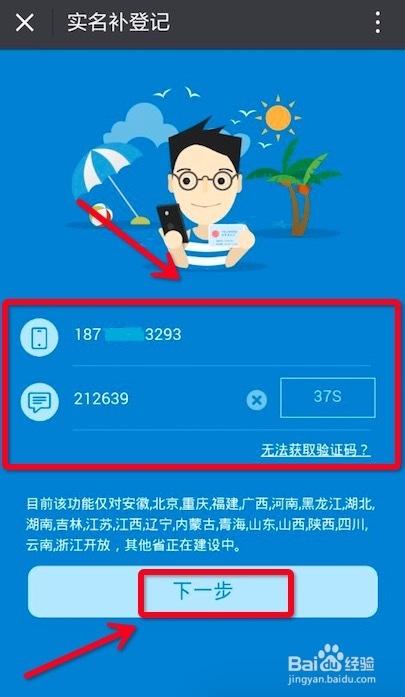 点击“开始使用”后,输入手机号码,输入短信验证码后,点击下一步。