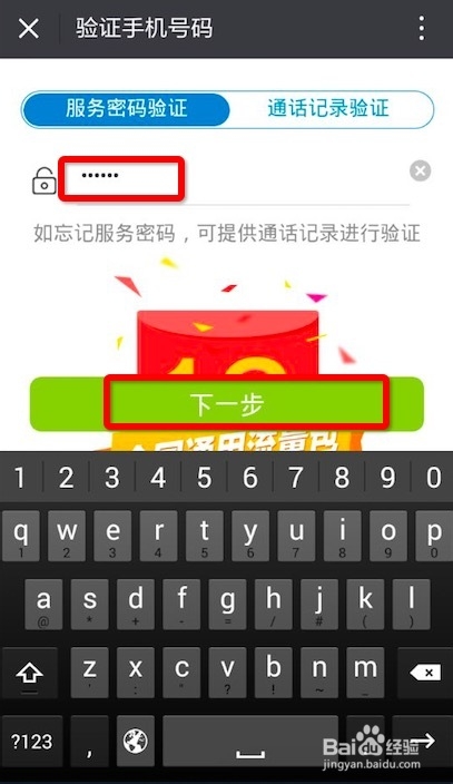 选择服务密码验证或者通话记录验证,个人推荐服务密码验证,比较方便,如果不记得自己的服务密码,可以发送数字“101”至“10086”获取,