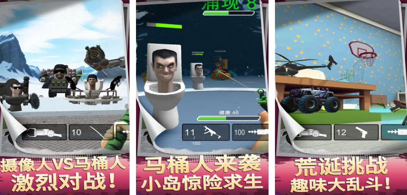 《小岛求生》是一款结合沙盒建造与生存对抗玩法的手游,以极高的自由度著称。故事背景设定在严寒冬季,低温环境极大增加了存活难度,真实还原了冰雪覆盖下的孤岛景象。玩家需利用工具抵御野兽袭击,维持体温与体力。游戏中设有“摄像人”与“马桶人”两大阵营,既可以各自为战,也能联合抵御外部威胁,适合喜欢PVP与团队协作的玩家体验。