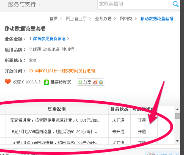 4、完成上一步之后,可以在图中红色圈内有个人目前已选的套餐,选择开通或者关闭某套餐。