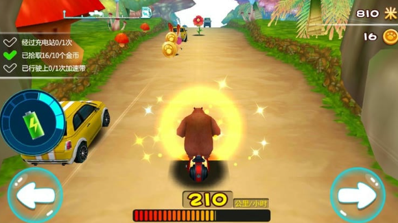 《熊出没奇幻空间2》在原有动画世界观基础上拓展出全新剧情线,并引入融合动作与解谜的创新型跑酷机制。每条赛道都设有独特的障碍逻辑与挑战结构,同时加入炫酷多样的载具系统,让玩家能够驾驶特制赛车,在光怪陆离的幻想场景中穿梭疾驰,体验别具一格的速度与视觉冲击。