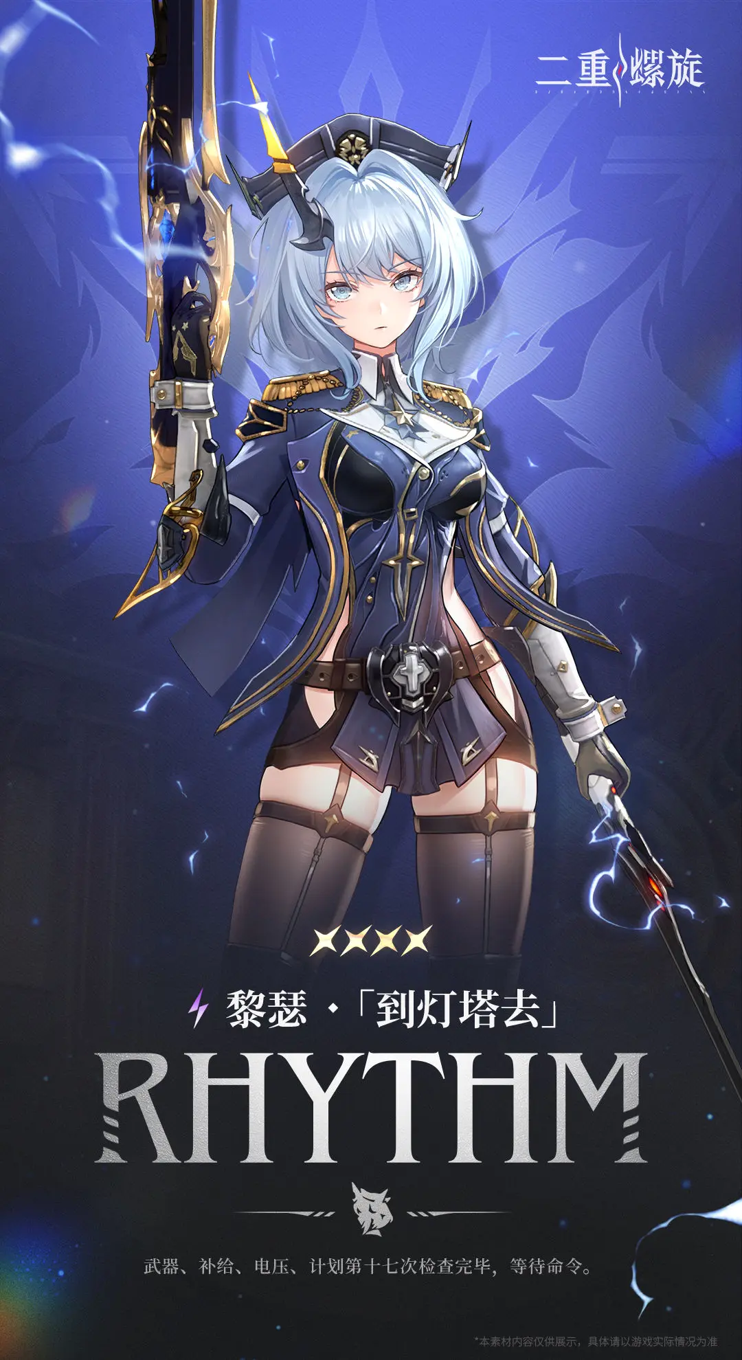 2技能“幕启”,进入兽化状态,持续耗蓝,武器也切换,一种武器对敌方实施近战的连段,另一种则是远距离的射击。在特定段数触发”二重唱”,此时获得效果和层数积攒,达到上限就进入兽化奉献状态,此时的爆发输出力度非常的高。