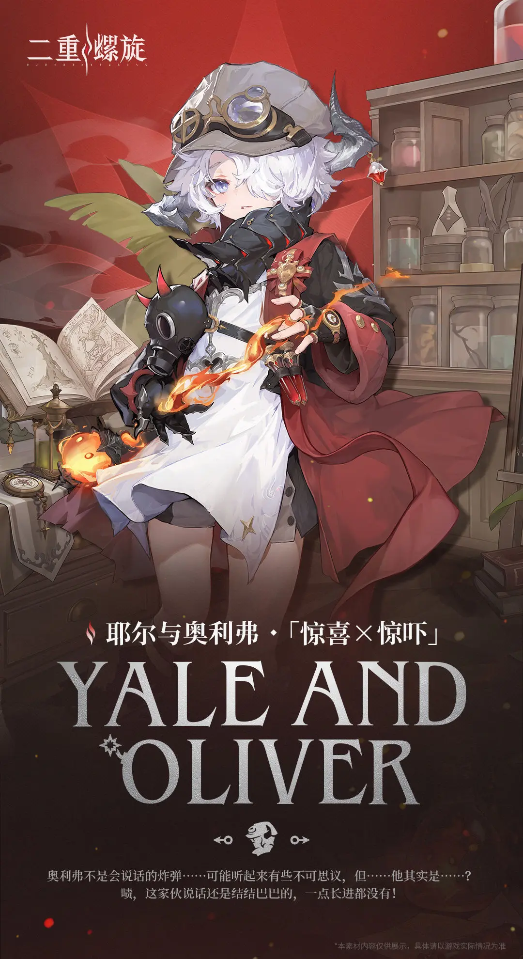 可免费获取的火属性角色。被动效果主要给输出技能打下基础,被动1让超过2米高投掷炸弹落地造成火伤,被动2在炸弹使用后叠加“轰鸣狂潮”,强化效果最多可获得3层。1技能扔出2种不同炸弹,3秒后爆炸引爆范围内其他的炸弹,耶尔制重战姿削弱,奥利弗出重伤害,差值导致投掷炸弹类型的不同,最多同时有10个炸弹存在。2技能”噩梦回忆生成实验室”,降低敌方的移速,并暂停地面上炸弹计时数,到时见直接引爆全部,每引爆1个就增强伤害,恢复神智,明显提升输出的爆发力度。