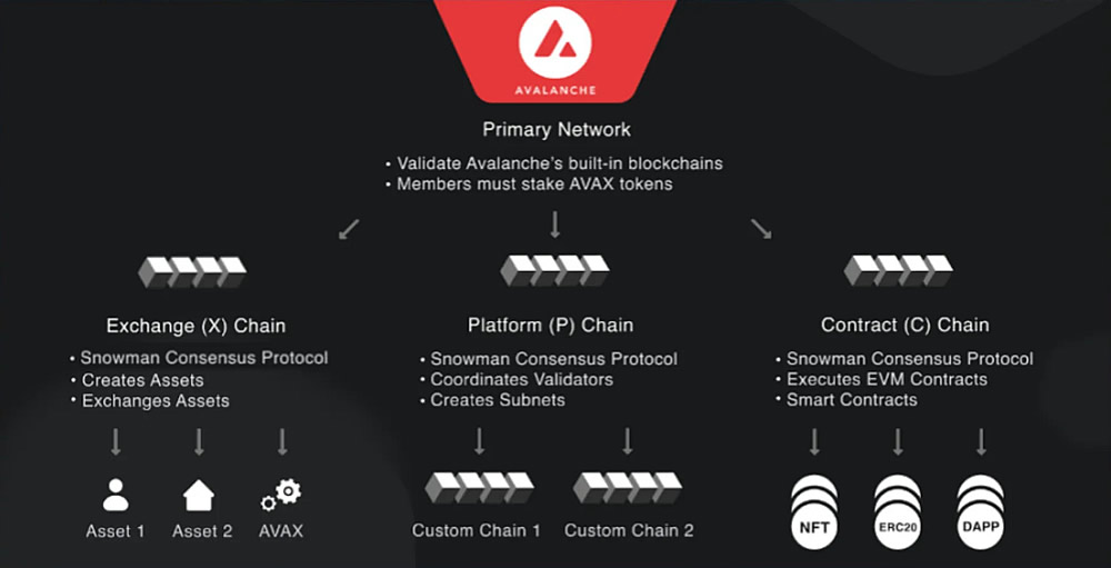 X-Chain 与P-Chain 多半是验证者、资产发行等底层用途。