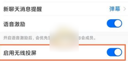 2、将启动无线投屏的开关开启。