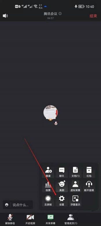 第三步:点击设置后,点击进入会议中(如图所示)。