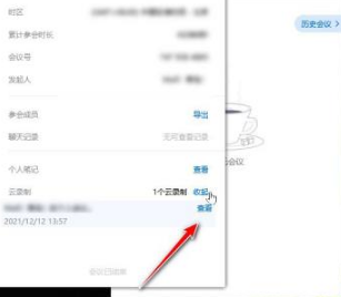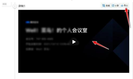 点击视频中间按钮重新播放会议内容,也可点击右上角导出观看。