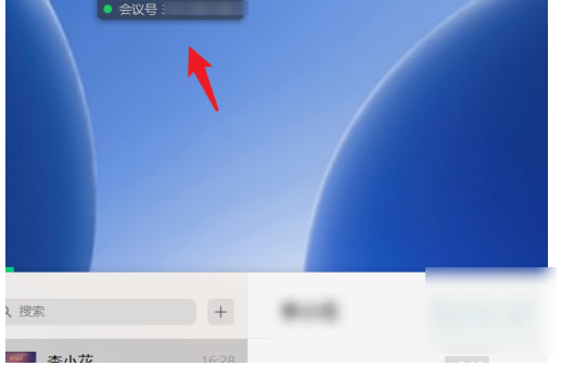 1、在电脑屏幕共享界面,点击上方的会议号。