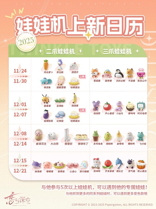 11月24日~12月7日,咕嘟蛋挞在二爪娃娃机的概率将会提升。