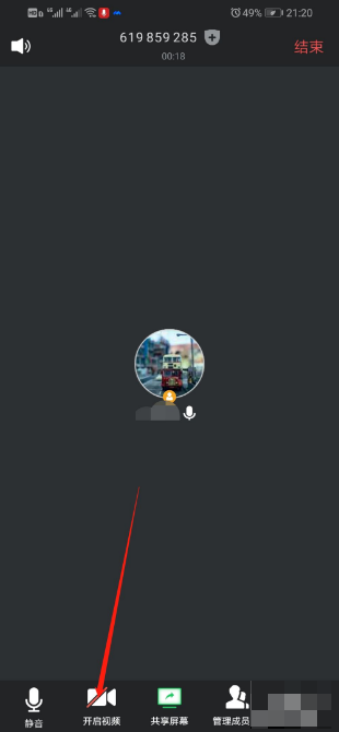 进入会议页面,点击左下角的【开启视频】,开启摄像头。