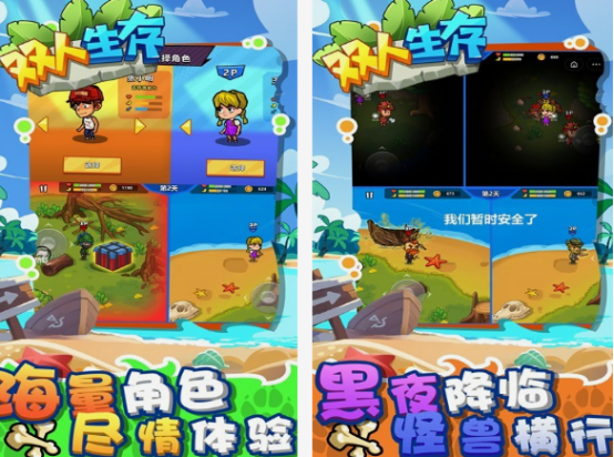 这是一款专为双人合作打造的生存类手游,提供丰富的角色选择和沉浸式的荒岛求生体验。两名玩家将共同置身于资源稀缺且危机四伏的孤岛环境中,必须通过采集材料、制作工具、建造庇护所来维持生存。白天需积极搜寻物资,夜晚则要警惕怪物来袭,合理分工才能提高存活几率。相比传统生存类游戏,本作强化了夜间威胁机制,增强了紧张感与协作必要性。