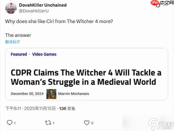 有玩家指出,《巫师4》将聚焦于一名女性在中世纪背景下挣扎求生的主题,而这或许正是社区经理更欣赏新版希里的深层原因——因为CDPR此前已明确表示新作将深入探讨性别议题与生存挑战。