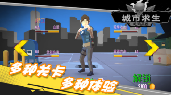 横版的展现形式,所有的事情都发生在混乱的街头上,也是由多个丰富的关卡内容组合而成,每个关卡都会给大家带来全新的游戏体验,化身为吃鸡英雄的你。通过侵权或者是跳跃等多种方式在街头上和敌方斗智斗勇,还提供很多炫酷的时装类型,任由大家随意装扮。