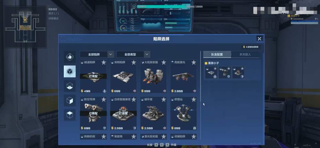 塔防模式与猎场玩法存在本质区别,尤其体现在职能划分上。每局四名玩家通常应以两名输出位搭配两名辅助位为最佳组合。每位玩家仅可携带一种陷阱类型,因此选型至关重要。辅助玩家推荐携带减速陷阱、防空塔、自修塔及修理站,以强化团队生存能力;而输出型玩家则应优先选择自修塔、大炮与聚能炮,这三者足以支撑高强度火力输出需求。