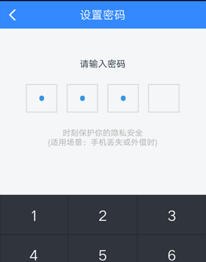 这时候我们再次退出APP,再次登录的时候我们发现就需要输入密码锁的密码之后才可以登录成功了。