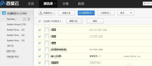 另外我们还可以通过电脑端,在线编辑管理我们的通讯录。打开百度云网页后,点击通讯录菜单项,在这里可以新建,删除或是编辑通讯录,也可以对通讯录进行分组,以方便管理。