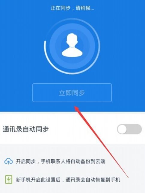 在打开的页面中点击“立即同步”按钮,这时手机就会自动把你手机上的通讯录自动同步到百度云空间上了。