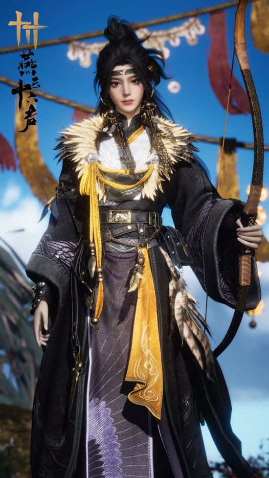 【剑羽雕翎】套装的设计灵感来源于草原上的年轻游侠,他们身披隼毛大氅,腰坠黄褐羽饰,衣袍上精心绣着各色翎羽,如同一只轻盈的鹰隼在长生天之下自由翱翔。套装的设计细节充满了草原的风情,让玩家在游戏中能够感受到那份独特的自由与豪迈。
