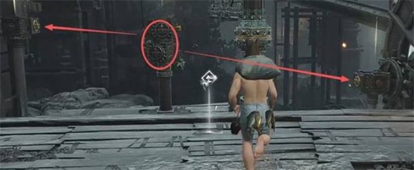 5、使用摄星拿月将中央柱子的机关绳索连接到两侧,放下吊桥,继续前进。