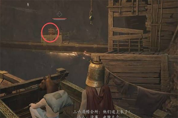 3、走水车右侧的小路绕回楼内,找到第二个发光地板机关。