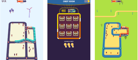 该游戏灵感来源于贪吃蛇玩法,玩家需引导小火车沿固定轨道前行,途中收集乘客以延长车身。采用俯视视角操作,画风萌趣,关卡设计丰富。每完成一局可开启宝箱,有机会获得独特皮肤,将传统火车驾驶与益智机制巧妙融合。
