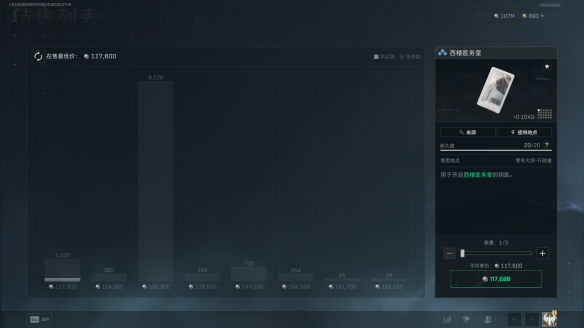 进入西楼医务室需要使用“西楼医务室钥匙”(蓝卡),其参考价格约为12万游戏币?。