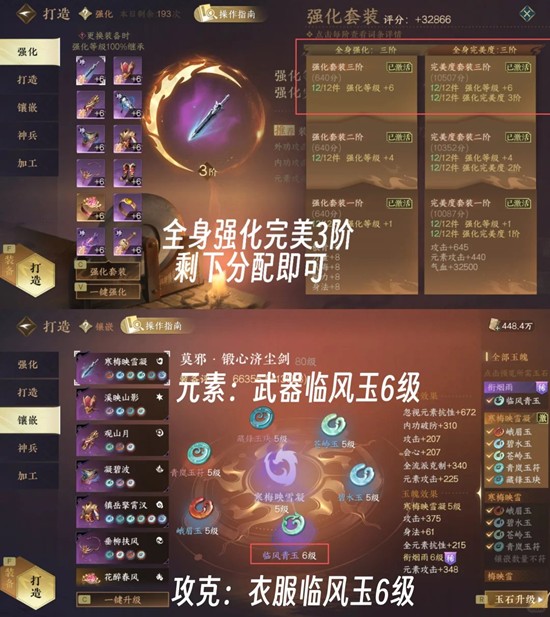 ps:攻击部位临风玉石为6级,强化如图吃满完美阶