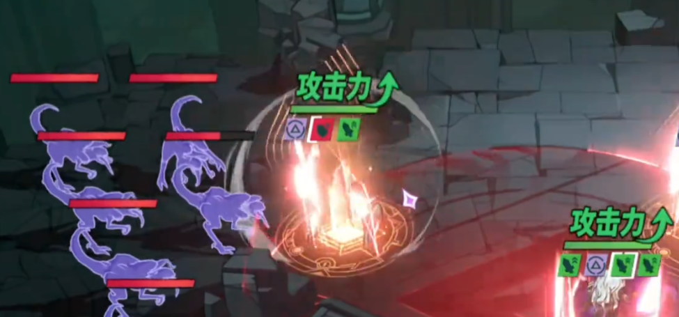 利用防御形态下的群体嘲讽,可以有效吸引火力,保护后排输出单位。此外,他的战技可根据当前形态生成不同类型的法阵:进攻形态下的法阵可提升范围内所有友军的攻击力,而防御形态的法阵则降低区域内己方单位所受伤害。需要注意的是,法阵必须覆盖到队友才能生效,因此释放时机与站位至关重要。