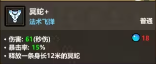 当冥蛇处于飞行状态时,会对路径上的敌人造成持续伤害。随着等级提升,该技能每次升级可增加25%的基础伤害值,成长性极佳。虽然其单次魔法消耗较低,但对法杖所提供的魔法上限有一定要求,因此新手阶段建议优先配置提升魔力储备的装备以维持连贯施法。