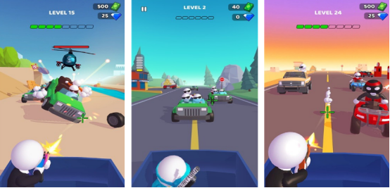 在人流密集的城市街道上爆发了一场惊心动魄的枪战对决,敌方势力源源不断地涌来,将你包围其中。为突破重围,可以选择驾驶载具进行高速闪避,利用漂移动作躲避火力攻击,并对敌方车辆实施精准打击。操作界面设有左右虚拟按键,左侧滑动控制前进方向,右侧点击或长按即可开火。看着一颗颗炫目的子弹从手中射出,准确命中敌人身体,带来强烈的成就感。