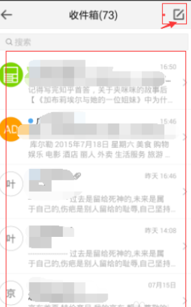 我们先不管已经收到的邮件,先试试如何发邮件,因为尝试所以我们想来自己给自己发一份邮件,具体右上角的编写按钮,打开编写按钮。