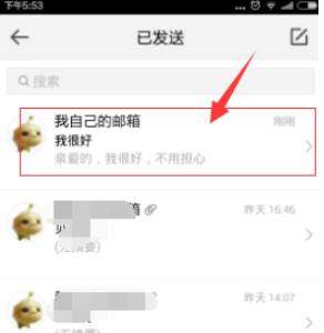 我们编写好文字信息之后,点击上面的发送按钮,就可以成功发送我们的邮件了,为了查看邮件是否发送成功,我们返回主界面,点击下面的已发送邮件打开。