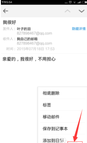 查看完成之后,我们点击下面的更多按钮,出现选择界面,我们可以把自己邮件进行保存分类之类的标注。