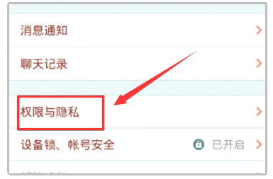 3、在弹出的新页面中选择“权限与隐私”选项。
