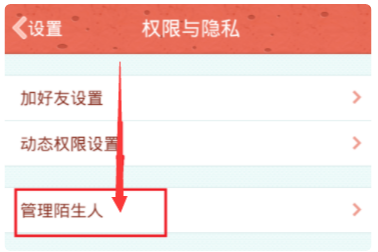 4、进入选项后在页面中找到“管理陌生人”选项。