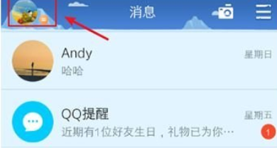 1、打开手机QQ左上角“头像”