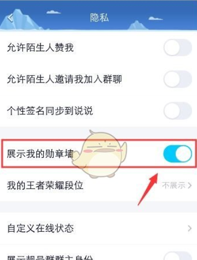4、将“展示我的勋章墙”开启