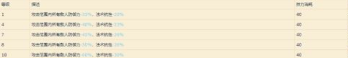 攻击范围内的敌人生命少于40%时,其受到的伤害提升至130%