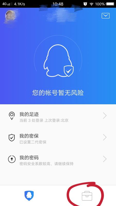 4.QQ登录完成后,会看到首页底部右下角有一个工具箱形式的图标,点击该图标。