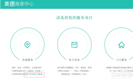 然后选择“我想合作”。就会出来一个“美团商家中心”。再选择*个的“美团外卖专用合作通道”。