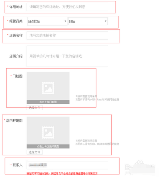 然后如图所示,按照要求把内容都填进去。要把自己的店铺拍漂亮点哦。