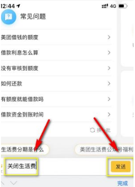 输入关闭生活费或者关闭借钱,这里主要是调出人工客服,点击发送。