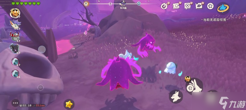 以夜枭为例,它的常规出没地点为黑水崖。正常状态下为蓝白配色,而当出现通体紫色的个体时,靠近后周围环境会随之变化,天空转为暗紫色,并自动进入战斗环节。这正是噩梦形态的显著特征之一。