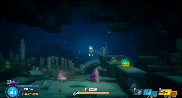 游戏给大家构建了一个庞大而精美的水下世界,可以自由潜入水中,去发现一些有趣且独特的环境,这里有很多的海洋生物可以遇到。大家需要对角色的生存指标进行管理,比如氧气供给,饥饿,以及水分等数值,需要收集各种资源,并且利用这些资源建造设施,制作工具,用这些来维持角色的生存,并展开对应的经营活动。
