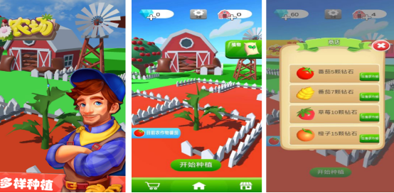 涵盖的农作物类型应有尽有,包括番茄或者是玉米等等,这些农作物的成长历程都完全不同,当将种子投入进去之后,就需要按时浇水,按时施肥,才可在秋天的时候收获更多的劳动果实。收货之后还可在自己的商店当中进行出售,以此兑换更多的钻石,扩大自己农场的规模。合理滑动屏幕就可在不同的区域中来回穿梭,也可建立自己的仓库,将各种农作物或者是劳动成果全部放在仓库中。