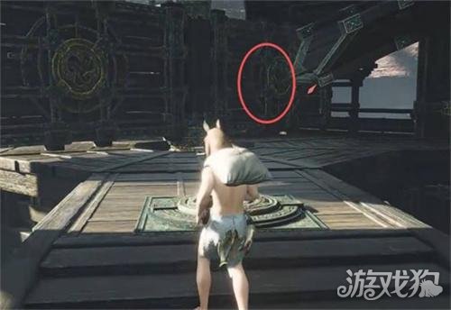 3、走水车右侧的小路绕回楼内,找到第二个发光地板机关。