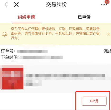 在跳转页面中选择需要客服介入的订单,点击“申请”发起交易纠纷申请,平台客服将会主动介入并跟踪处理。