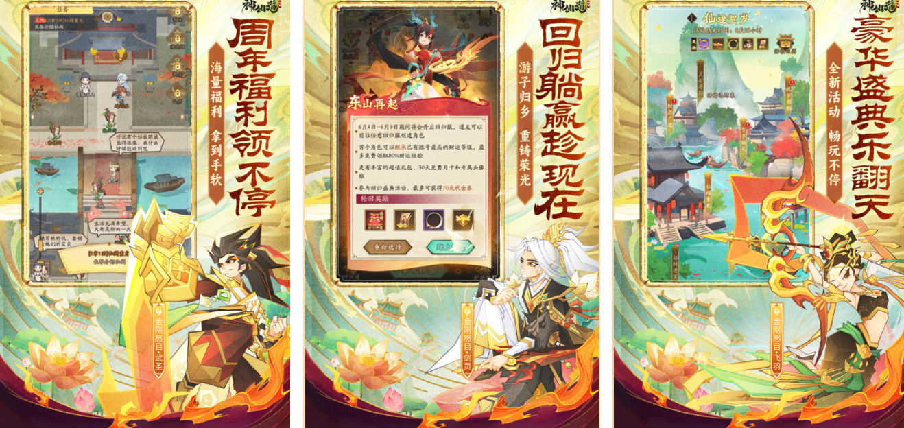 《神仙道3》根植于中华传统神话体系,构建出一个极具东方韵味的幻想世界。角色设计汲取敦煌壁画色彩灵感,人物造型华丽且富有文化底蕴。玩家可在剧情推进中亲身参与经典神话桥段,并操控耳熟能详的神祇投入战斗。所有角色均以卡牌形式存在,支持收集、养成与布阵操作。结合回合制策略与自动放置玩法,游戏强调阵容搭配与技能协同,激发玩家挖掘深层次战术组合的可能性,从而提升整体策略深度与可玩性。